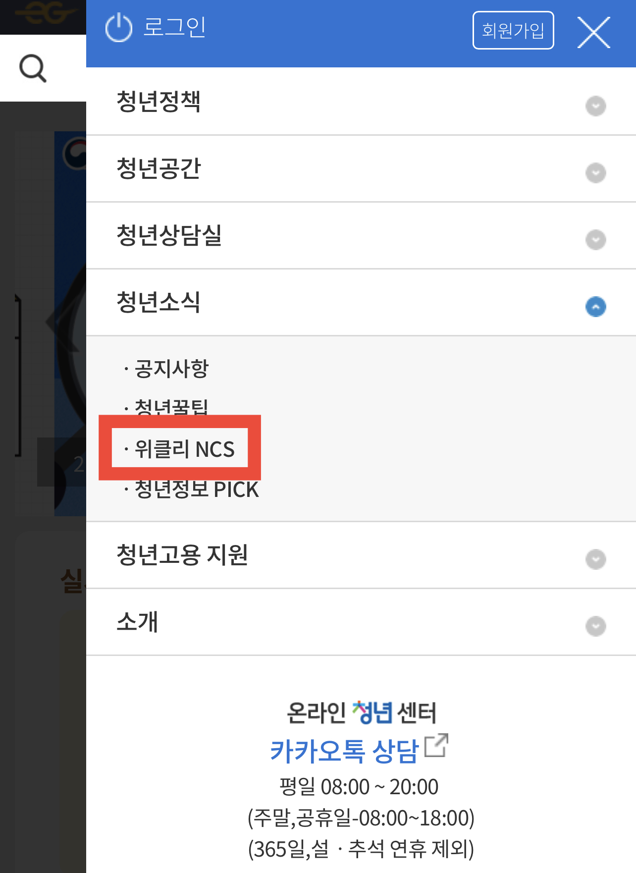 그리고 청년소식 > 위클리 NCS를 클릭해주시길 바랍니다.