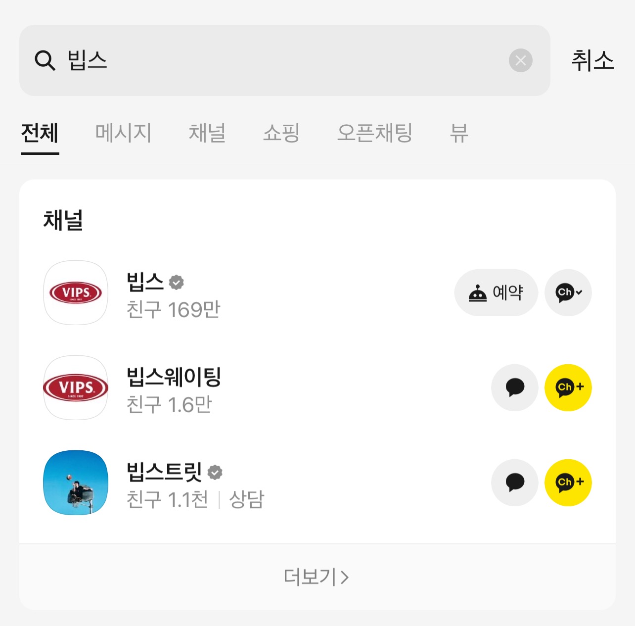 *카카오톡 메인 친구화면 검색창에 빕스만 쳐도 채널 탭에 나옴