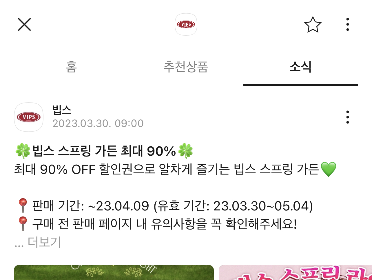 그러면 여러가지 행사 정보와 빕스 소식에 대한 쿠폰을 뿌리는데 저는 무려 15,000원짜리 상품권을 1,500원에 구매했고 통신사 할인까지 중복으로 받았습니다.