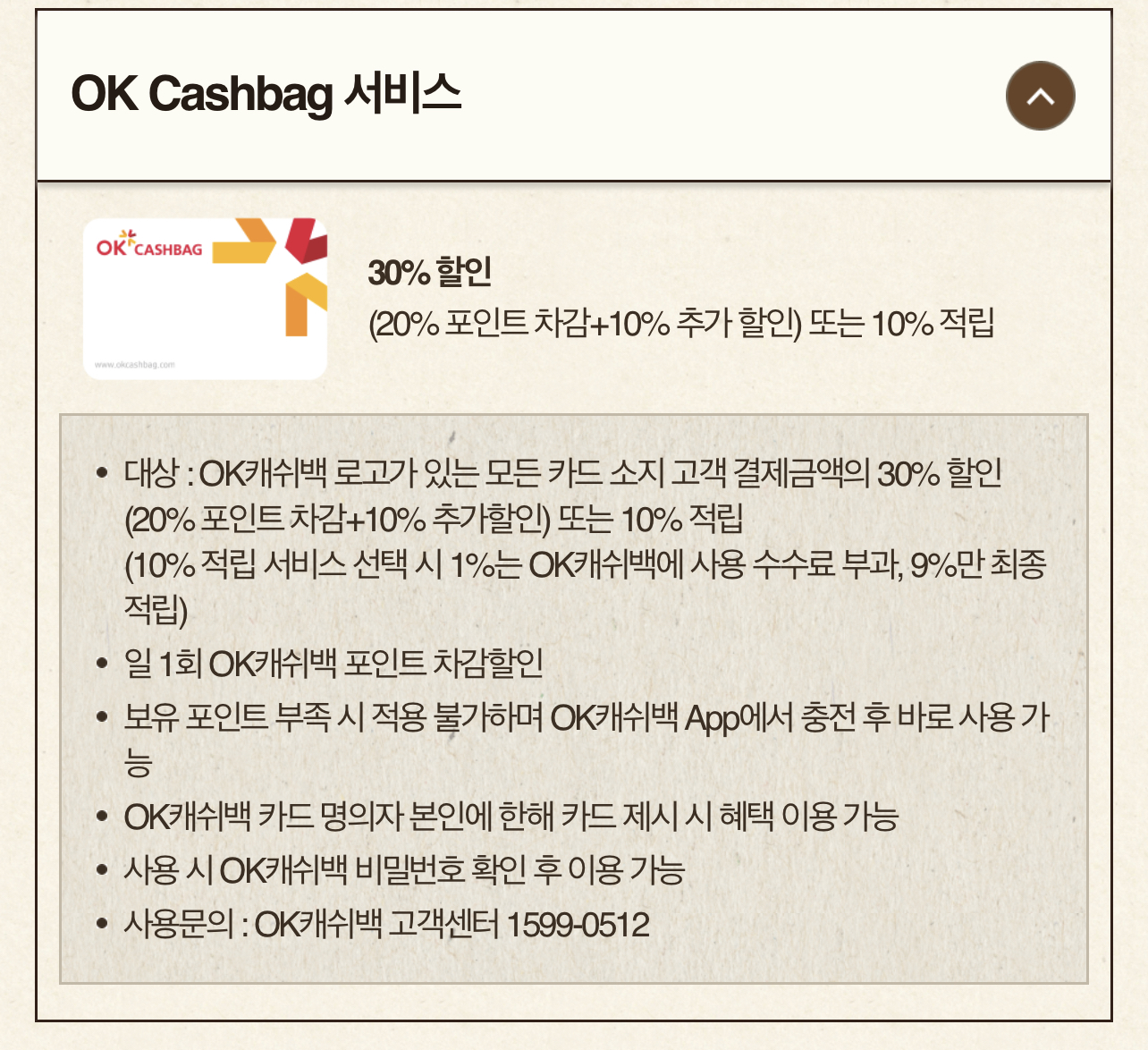 • 사용문의 : OK캐쉬백 고객센터 1599-0512