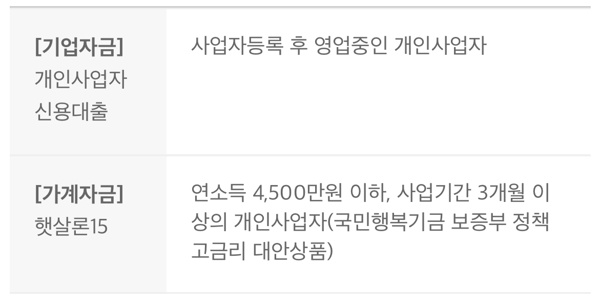 개인사업자번호가 있는 개인사업자만 대출 신청이 가능합니다.