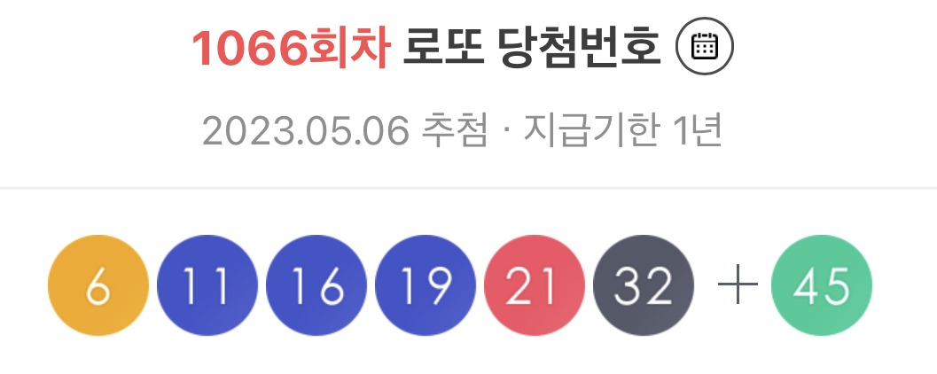 2023년 5월 6일 제1066회 로또 당첨번호 조회 결과가 발표되었으며 이번 로또 1등 당첨지역까지 같이 공개되었습니다.