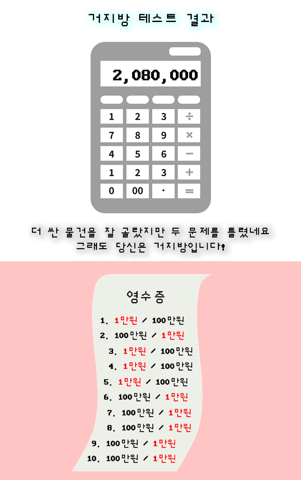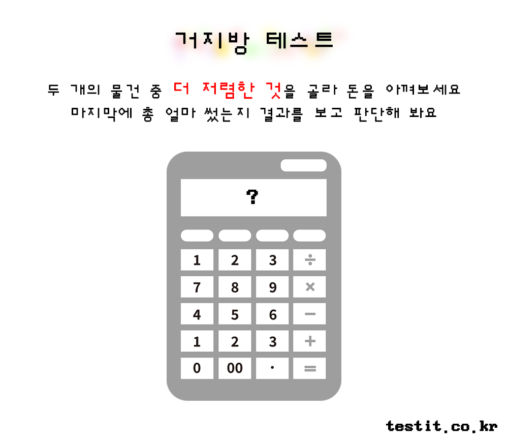 해당 테스트는 총 10문제로 문제가 나오면 1번 2번중에 더 저렴해보이는 물건을 찾아 숫자만 입력해서 푸는 방식입니다.