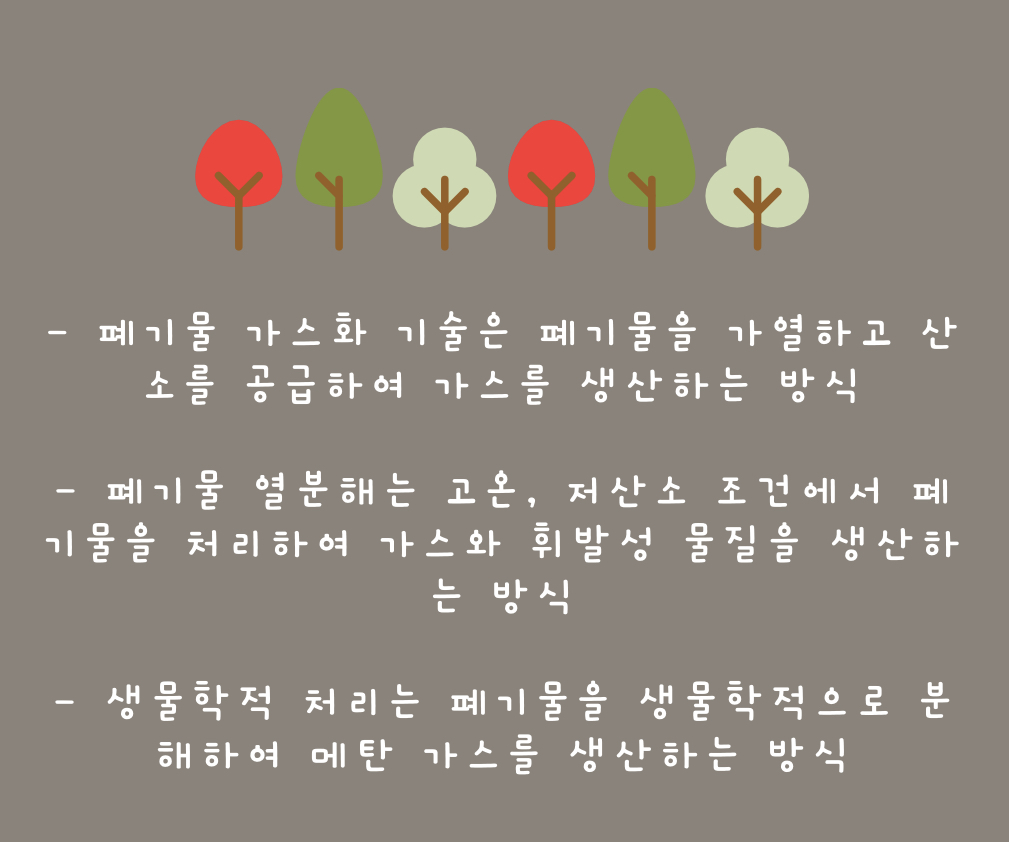 - 생물학적 처리는 폐기물을 생물학적으로 분해하여 메탄가스를 생산하는 방식