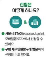 전자송달과 자동납부 서비스 신청은 세금납부시스템 또는 모바일 세금납부 앱(STAX), 간편결제사 앱(네이버, 카카오페이, 토스, 페이코 등), 카드사 앱(신한카드, 하나카드)을 통해 가능하고 구청 세무민원창구에 방문해 신청할 수도 있습니다.