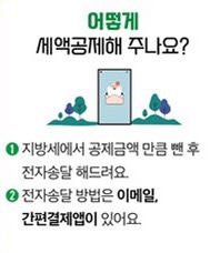 납세자는 전자송달을 신청한 다음 달부터 부과되는 지방세에서 공제금액이 공제된 전자고지서를 전자우편이나 휴대전화 모바일앱으로 받을 수 있습니다.