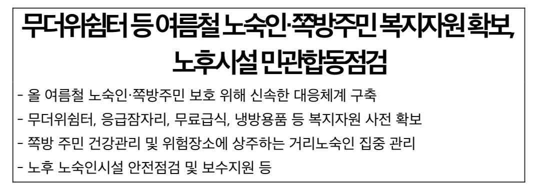 여름철 노숙인 및 쪽방 주민 보호 대책