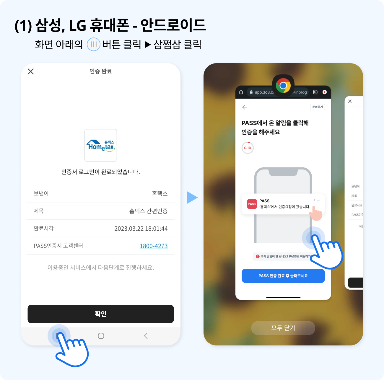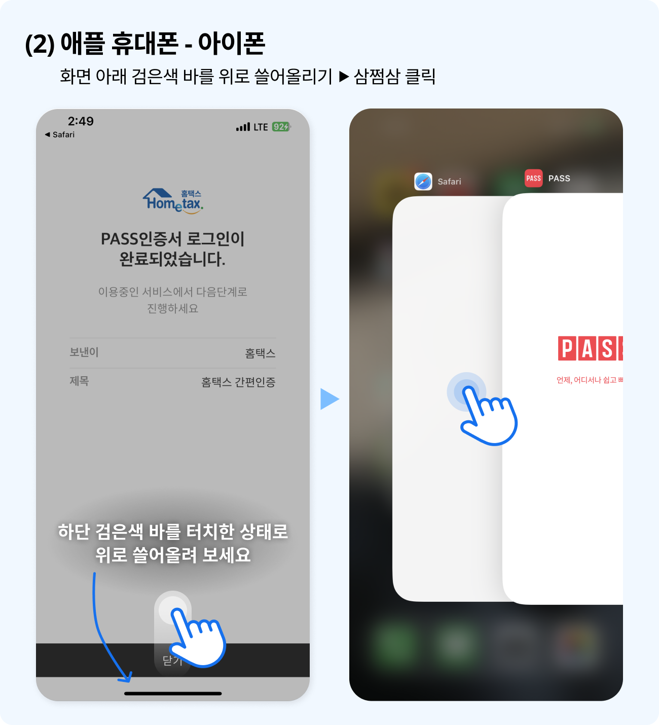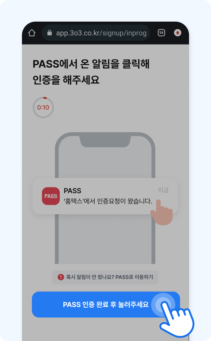 (5) [PASS앱 인증 완료 후 눌러주세요] 버튼을 클릭하면 끝