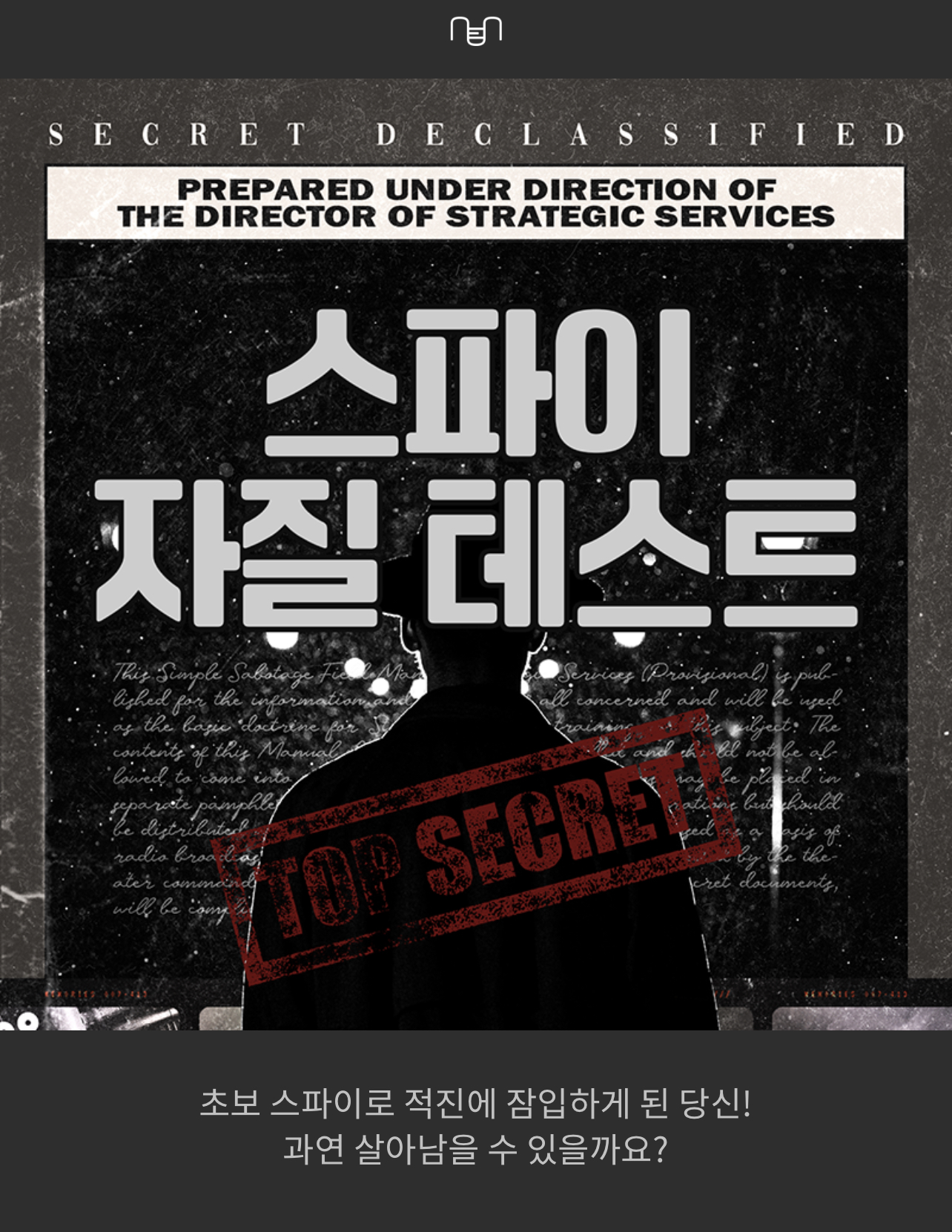 만약에 내가 초보 스파이로 적진에 잠입하게 된다면 과연 나는 어떻게 행동하고 또한 살아남을 수 있는지를 알아보는 테스트가 있어서 소개드리려고 합니다.