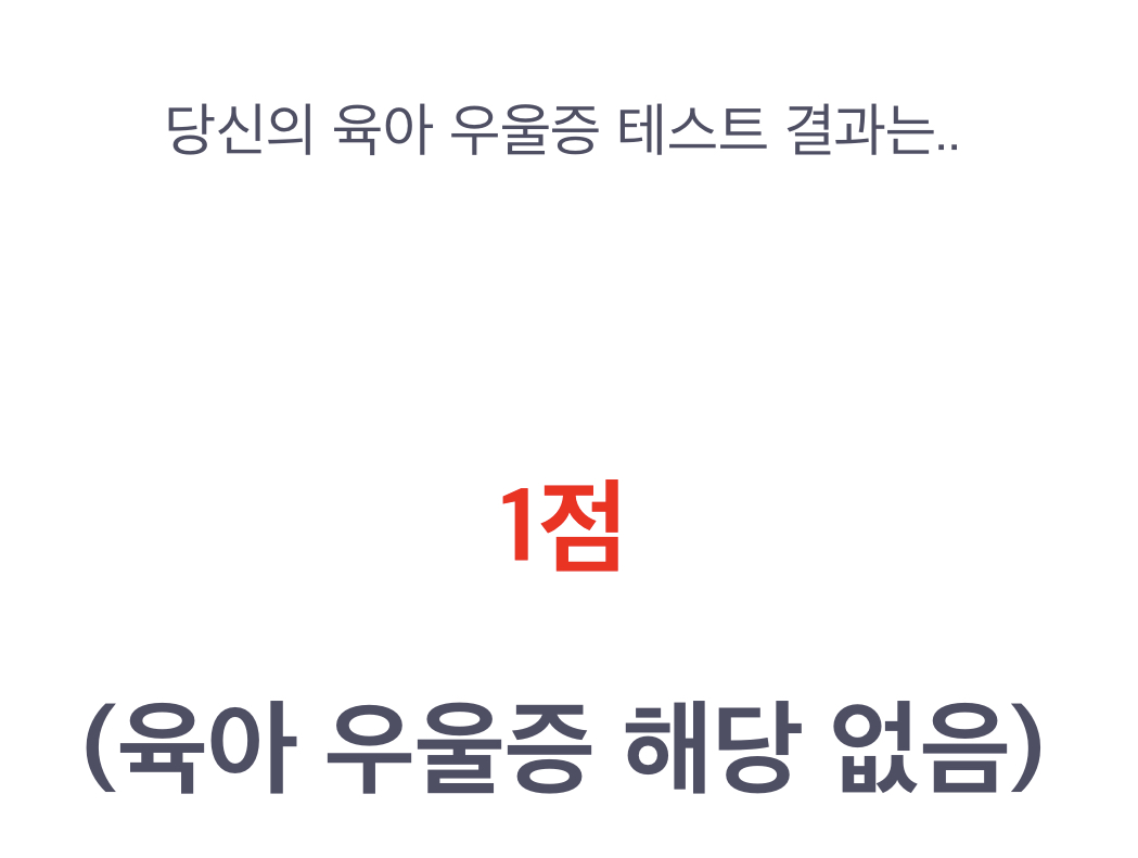 저의 육아 우울증 테스트 결과는 1점이 나왔습니다.