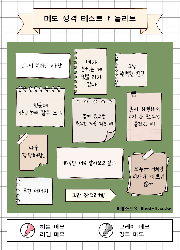 테스트잇에서 내 성격을 메모지로 적어서 알려주는 테스트가 있다고 해서 안내드리려 합니다.