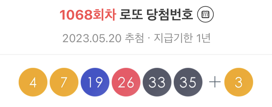2023년 5월 20일 제1068회 로또 당첨번호 조회 결과가 발표되었으며 이번 로또 1등 당첨지역까지 같이 공개되었습니다.