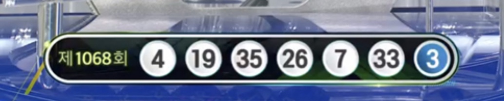 1068회 로또 당첨번호 조회 결과 4,7,19,26,33,35번