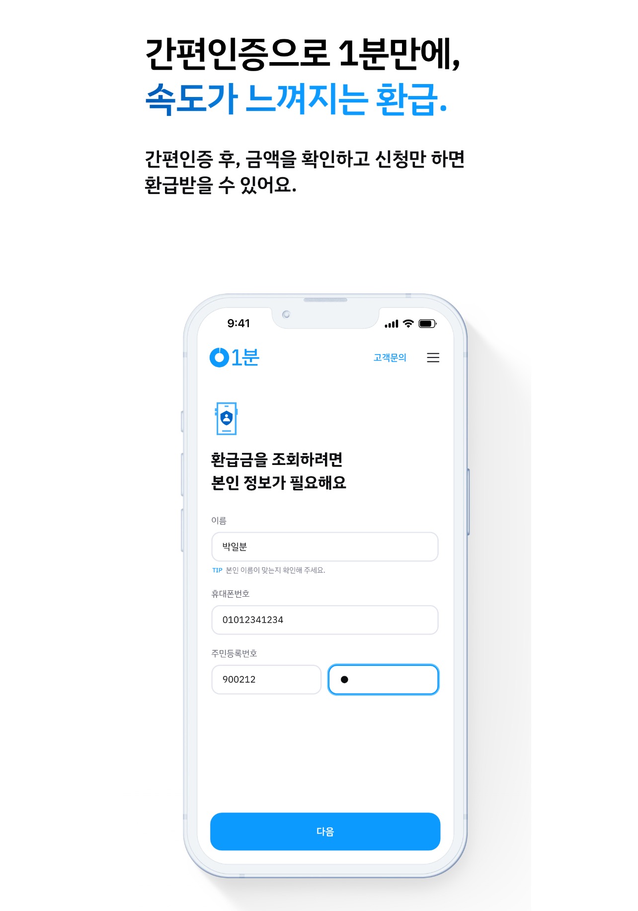 1분의 장점은 불편한 세무 수임 동의 없이 마음 편하게 환급 받을 수 있습니다.