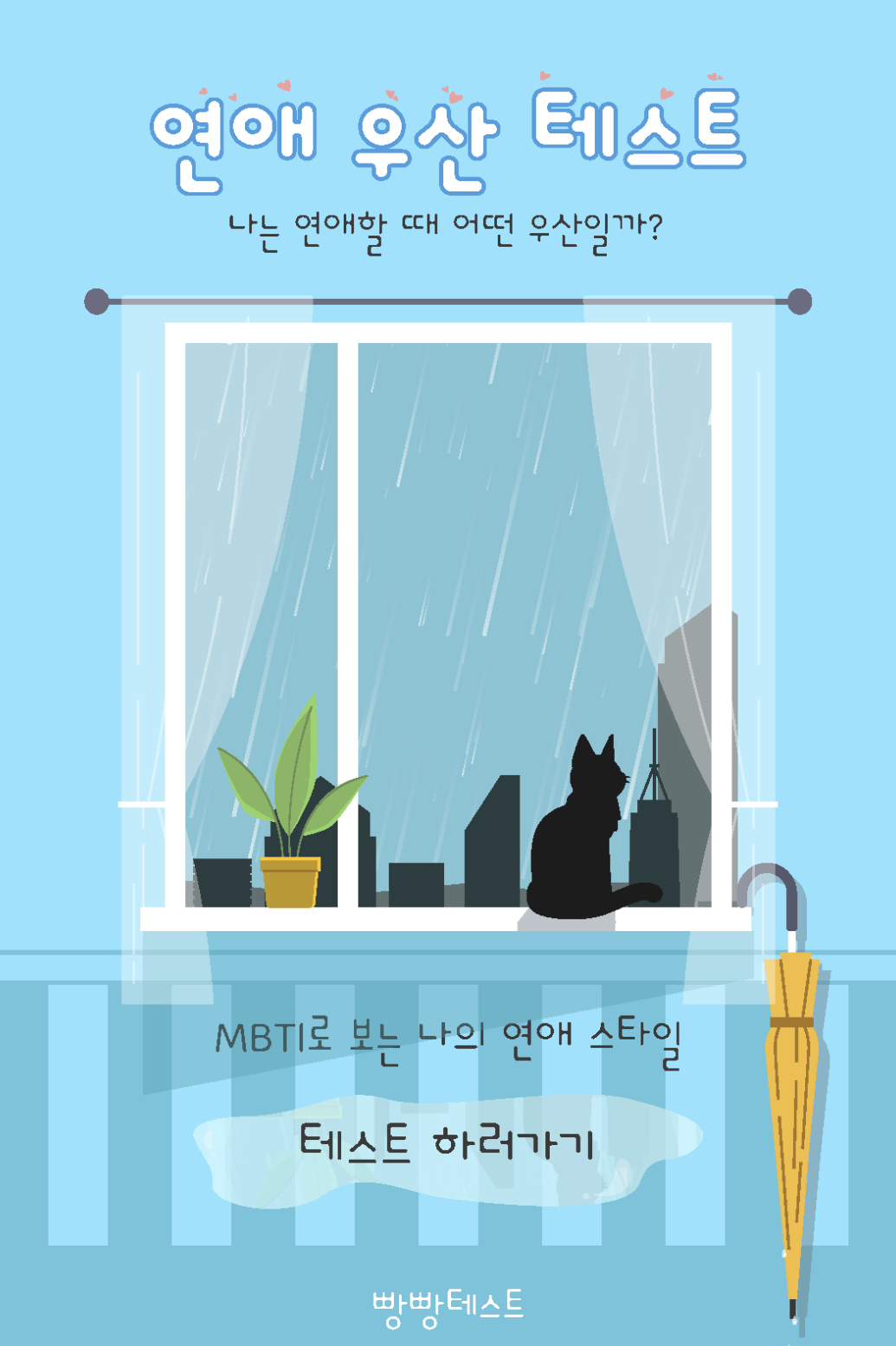 우산으로 보는 나의 연애스타일인 MBTI 연애 우산 테스트가 빵빵테스트에서 새로 나왔다고 하는데 한번 소개드리려 합니다.
