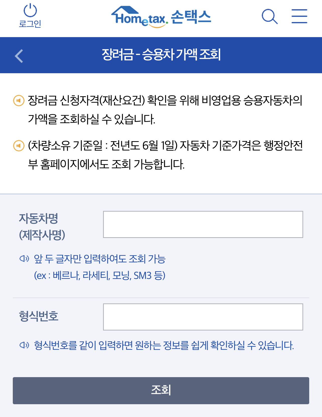 자동차명(제작사명) 또는 형식번호를 입력하시고 자동차 시가표준액 조회(차량 시가표준액 조회)를 할 수 있습니다.