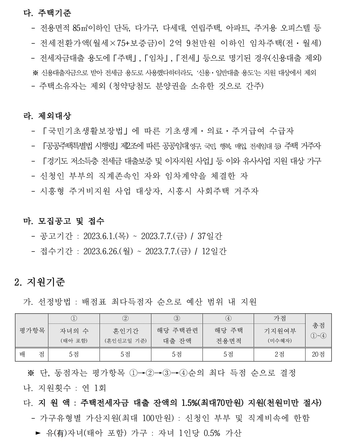 자세한 사항은 시청 홈페이지와 주택과 주거복지팀(031-310-3851) 또는 주소지 동 행정복지센터를 참고하시길 바랍니다.