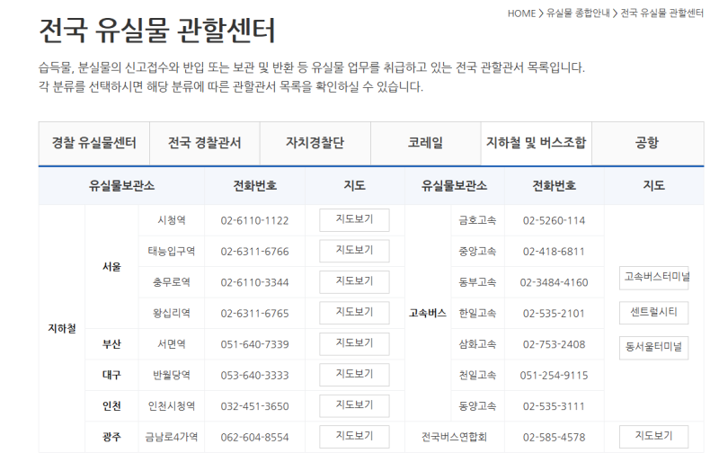 * 자세한 내용은 https://www.lost112.go.kr/prevent/lostCenterList.do 에서 확인해 보시길 바랍니다.