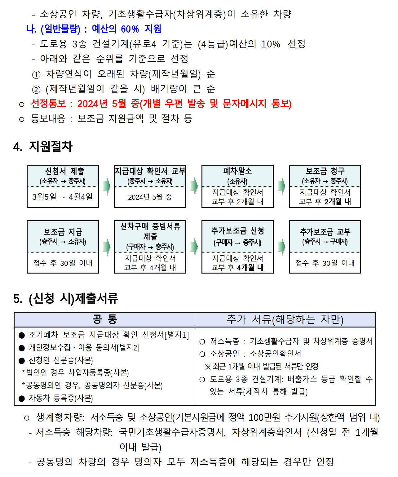 특히 2024년 올해는 지난해와 달리 4등급 경유 차량 중 저감장치(DPF)가 부착된 차량도 지원 대상에 포함됐다고 합니다.