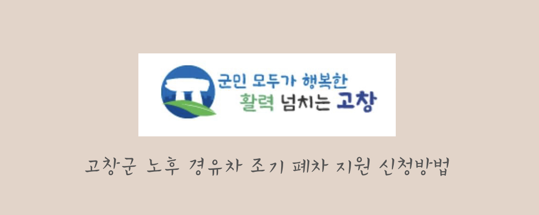 노후 경유차 조기 폐차 신청은 예산 소진 시까지 고창군에서 접수하며 차량등록증과 신분증 사본을 지참하고 차량등록지 읍·면 행정복지센터를 방문하면 됩니다.