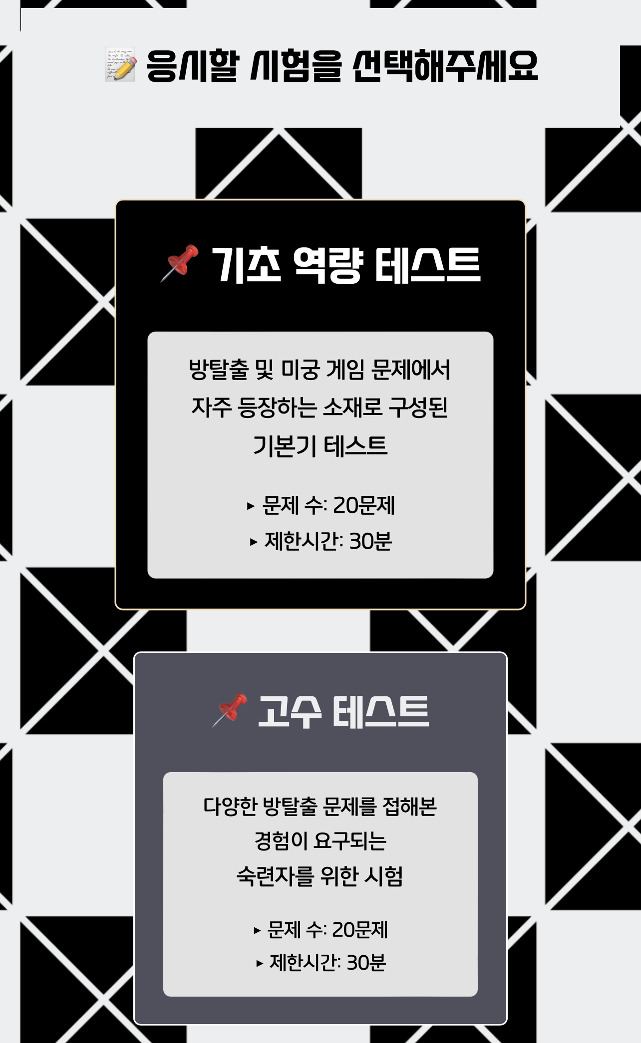 다양한 방탈출 문제를 접해본 경험이 요구되는 숙련자를 위한 시험