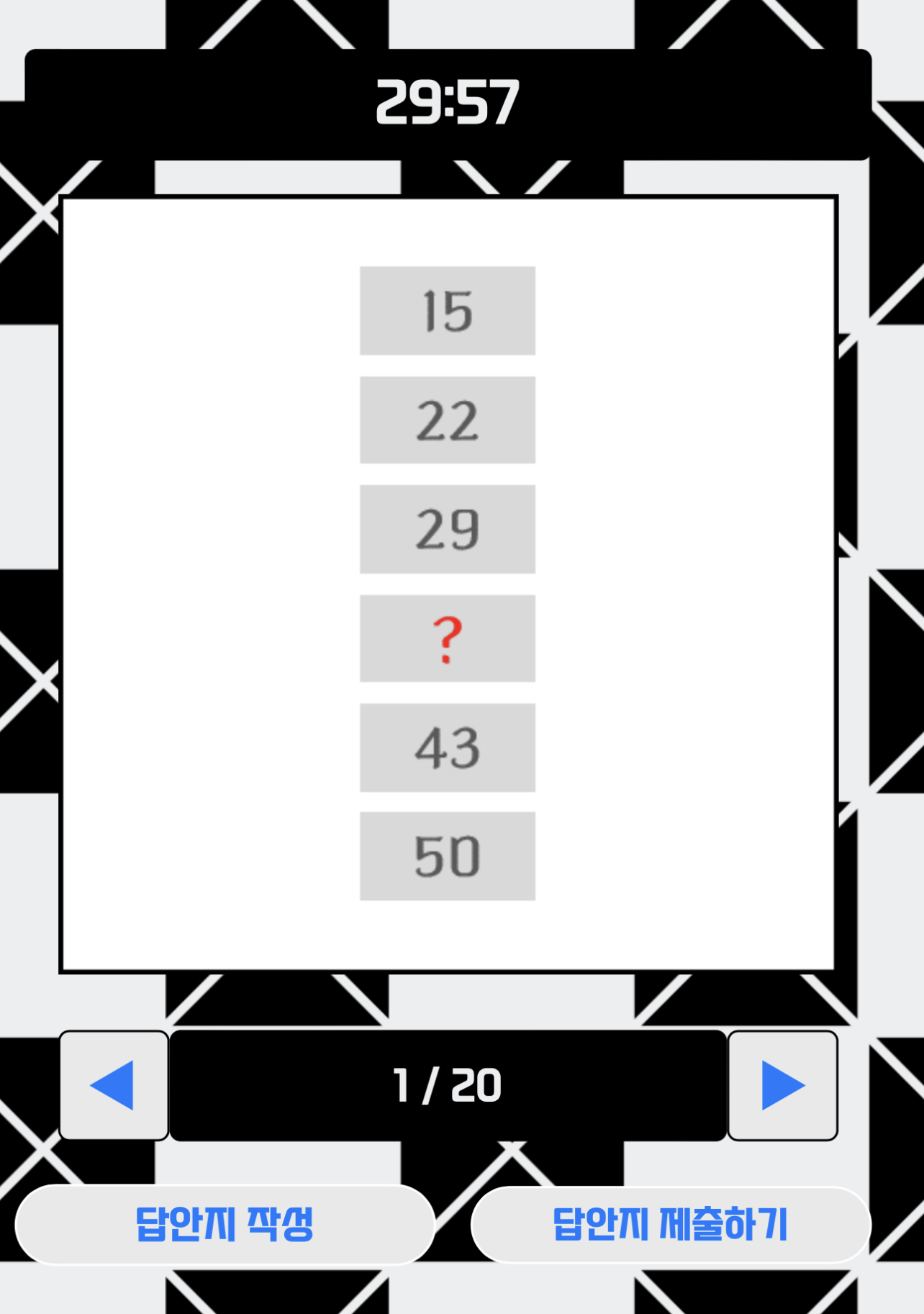 제한시간 내에 답안지 작성 후 문제를 다 푸셨으면 “답안지 제출하기”를 통해서 진행하시길 바랍니다.