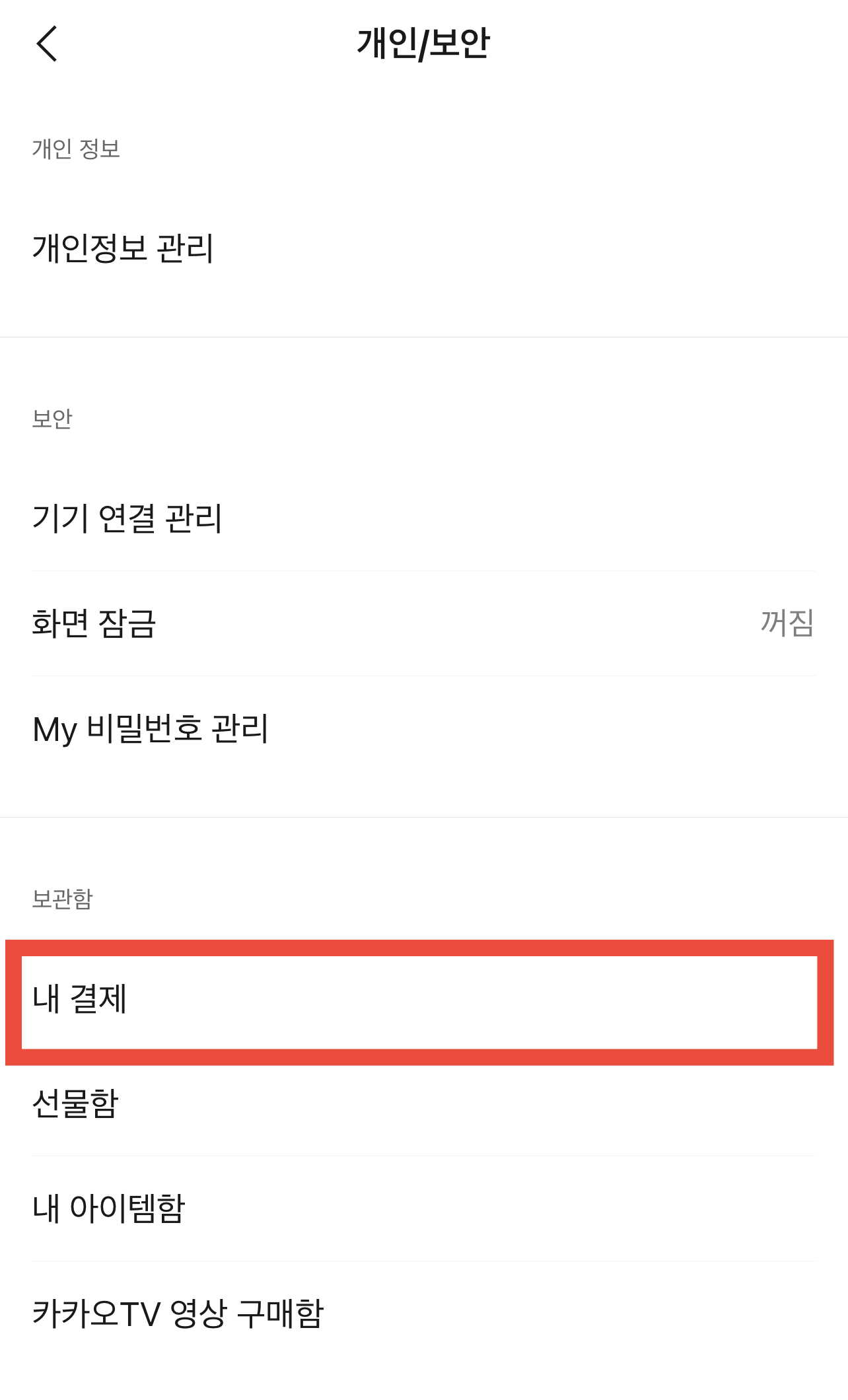 3. 보관함 메뉴에 있는 “내 결제”를 클릭하시길 바랍니다.
