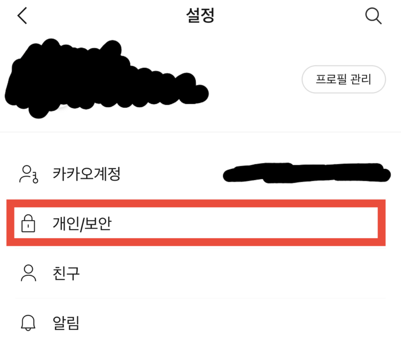 2. 개인/보안을 눌러주시길 바랍니다.