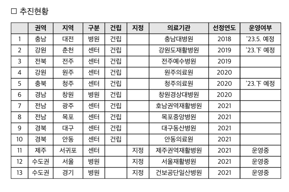 공공어린이재활병원·센터 전국 선정 현황은 수도권·제주권 3개소 지정·운영 중이고 대전을 시작으로 건립병원·센터* 순차적 개원 예정이라고 합니다.