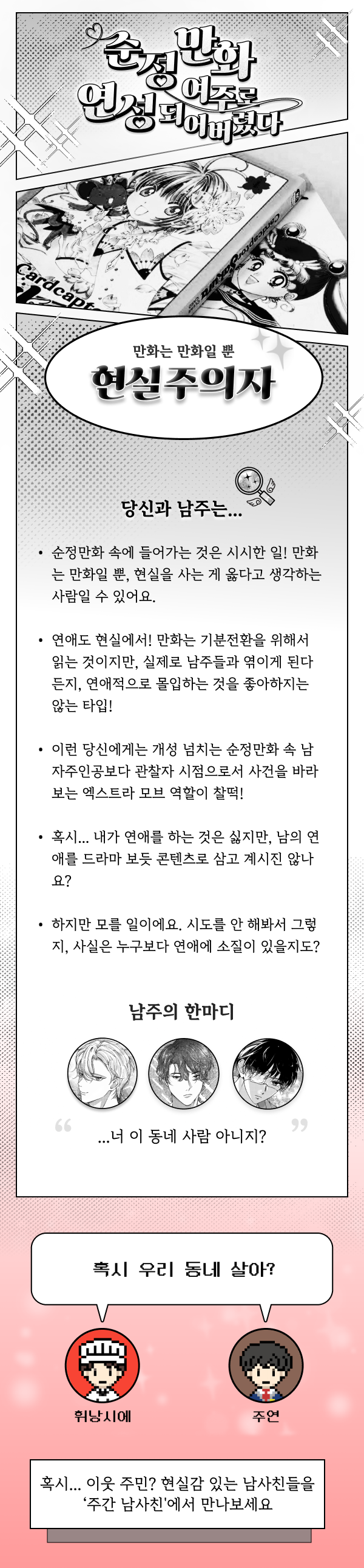 • 이런 당신에게는 개성 넘치는 순정만화 속 남자주인공보다 관찰자 시점으로서 사건을 바라 보는 엑스트라 모브 역할이 찰떡!