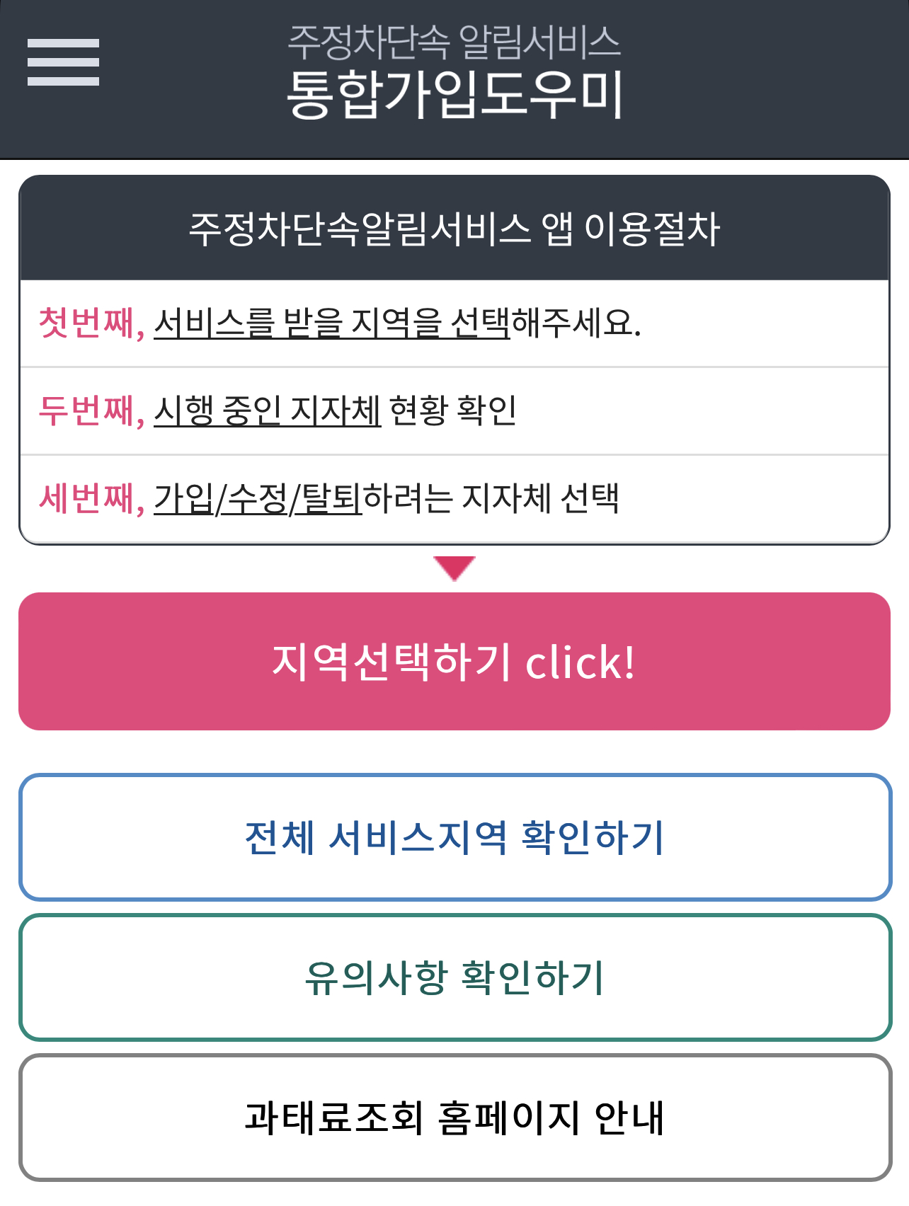 [주정차단속알림서비스 통합가입도우미 서비스 지역]