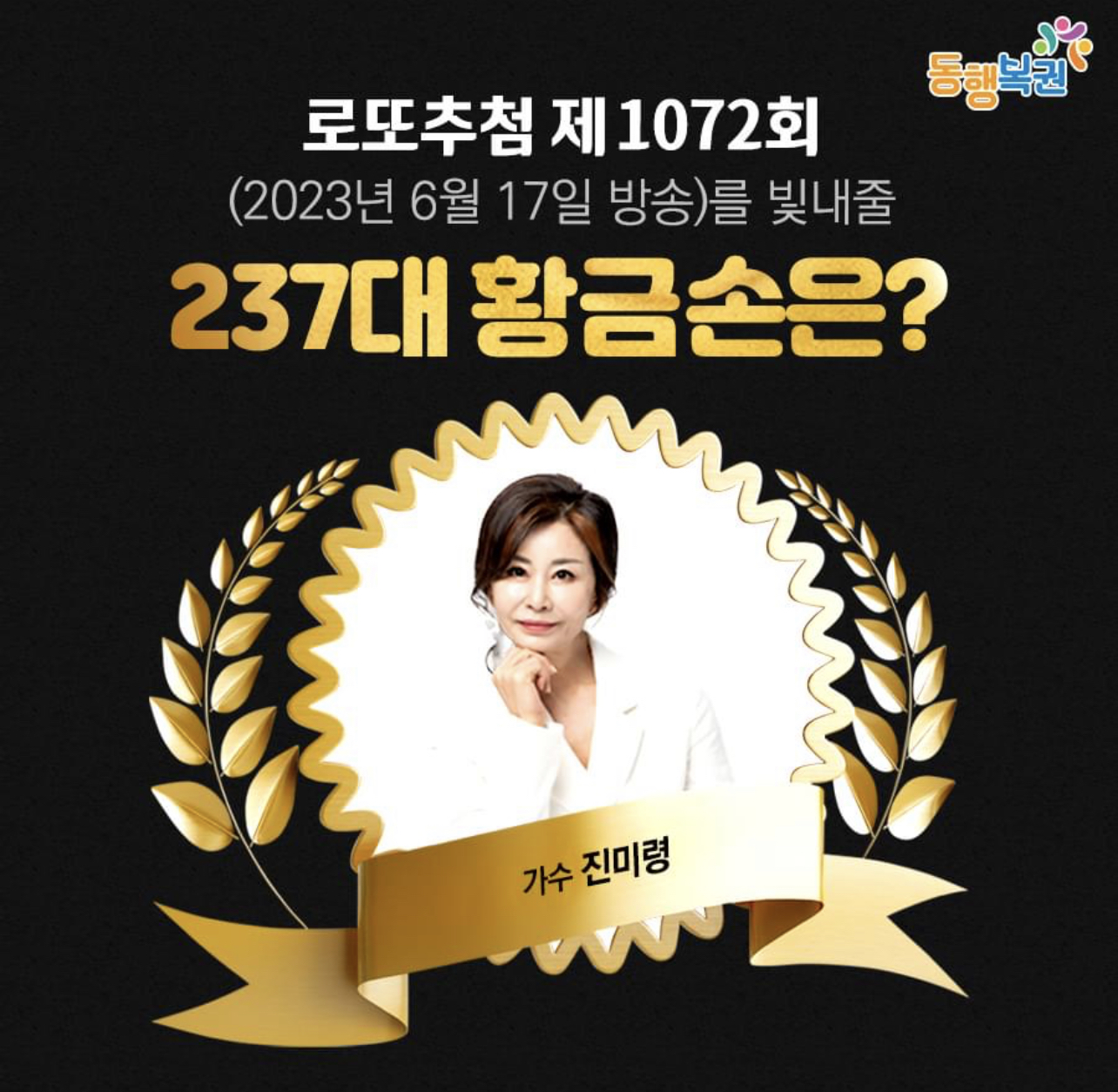 가수 진미령이 1072회 MBC '생방송 행복드림 로또 6/45' '황금손'으로 출연한고 합니다.