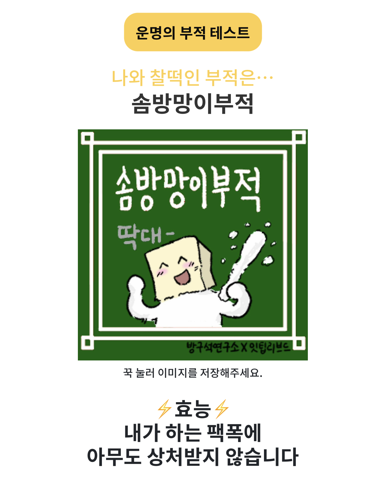 나와 찰떡인 부적은 솜방망이 부적이 나왔습니다.