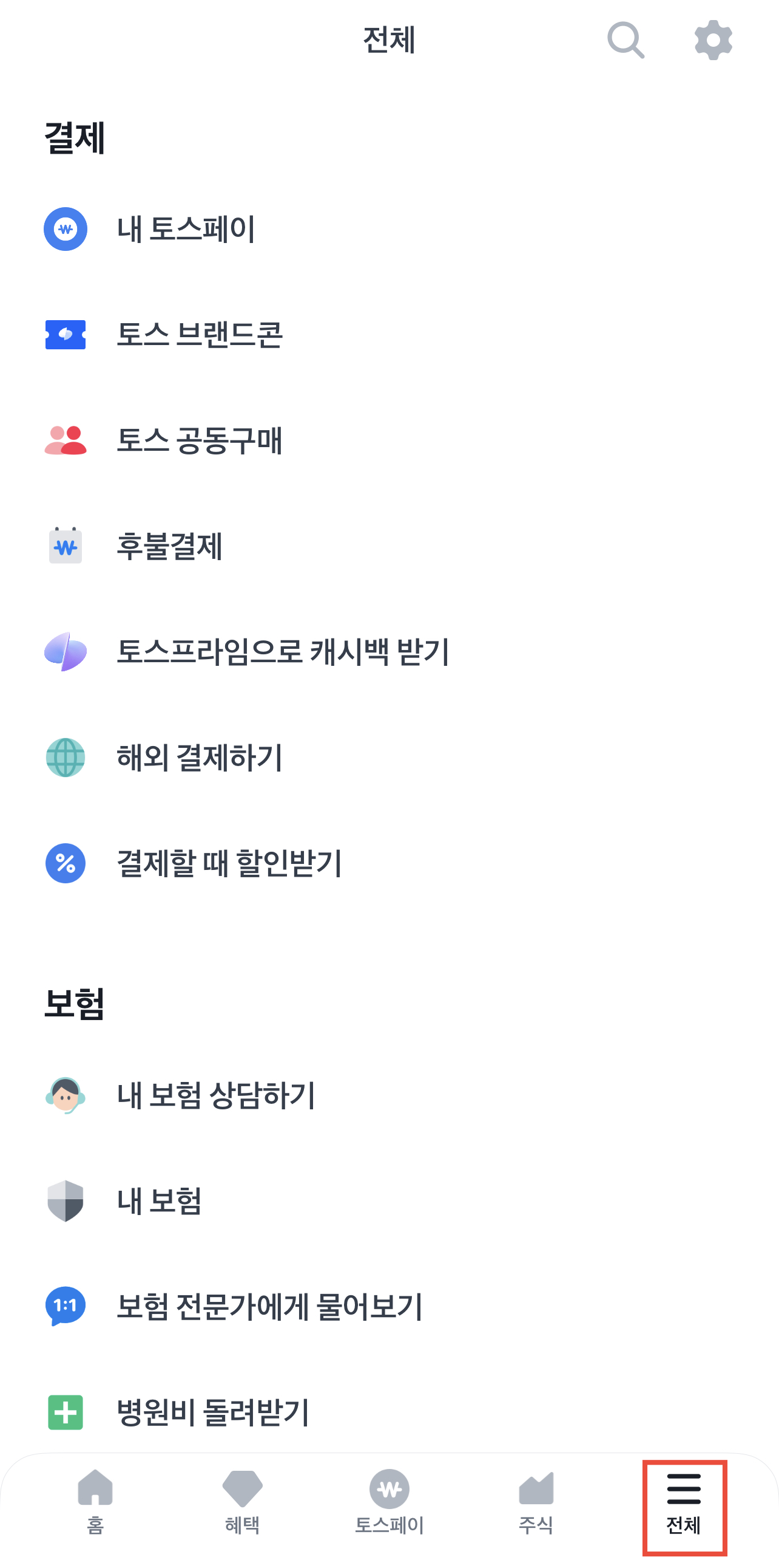 먼저 토스 앱에서 하단에 전체를 누르고 결제 탭에서 “토스 공동구매”를 눌러주시길 바랍니다.
