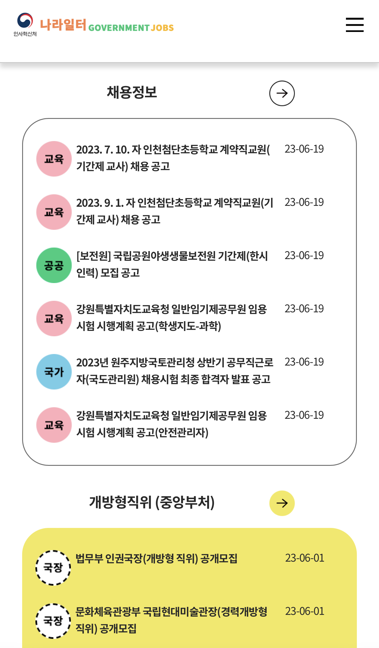 또한 2015년부터 7급 특채도 민경채로 통합되었으며 하지만 6급 특채는 '나라일터'를 통해 계속 선발하며 민경채 제도에 포함시키지 않는다고 합니다.