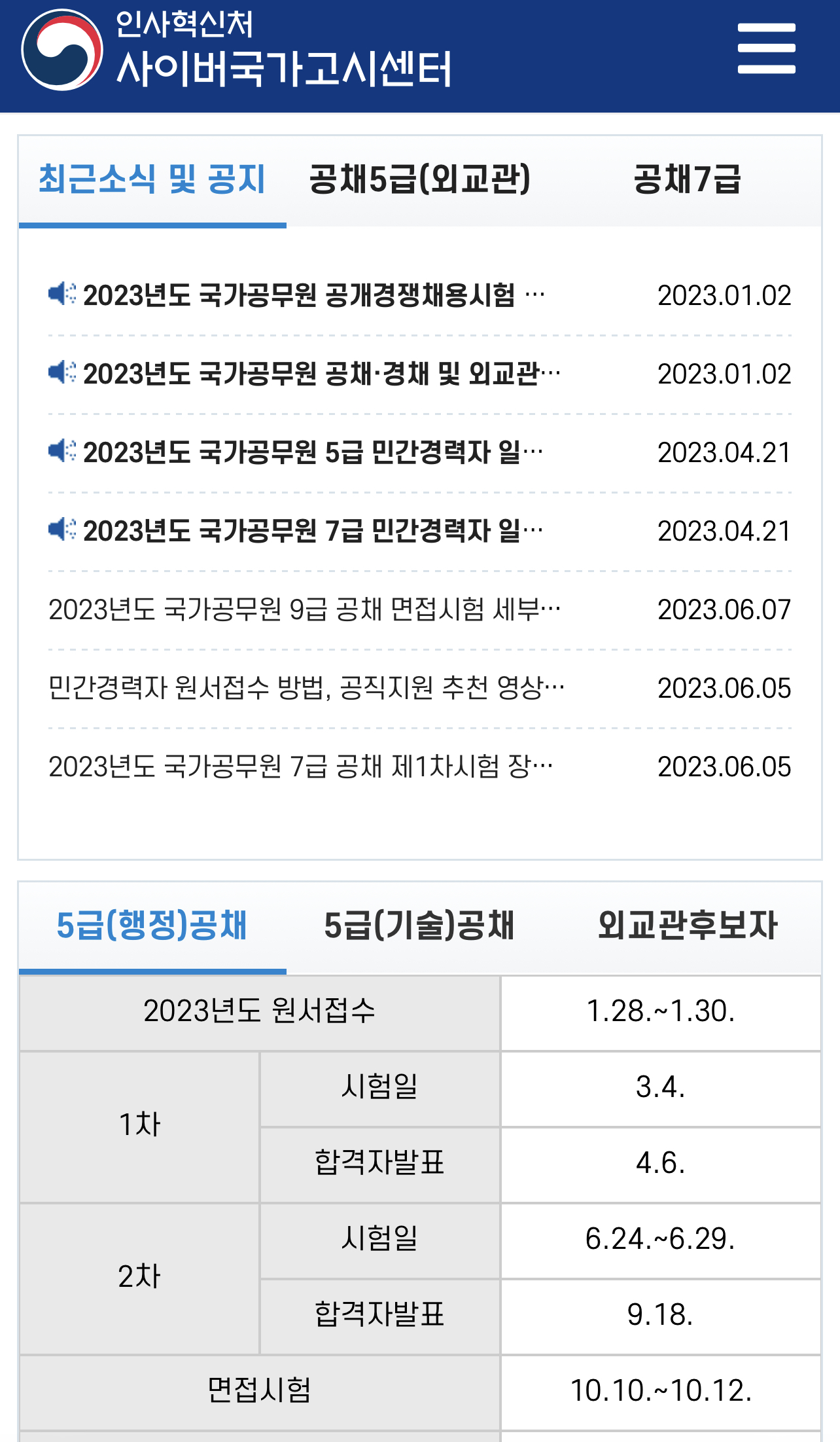 외교관 시험일정같은 경우는 인사혁신처 사이버국가고시센터 및 나라일터에서 시험일정과 정보를 확인할 수 있습니다.