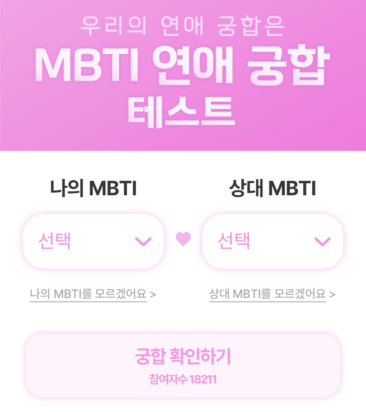 먼저 나의 mbti선택과 상대방 mbti 선택을 해주시길 바랍니다.