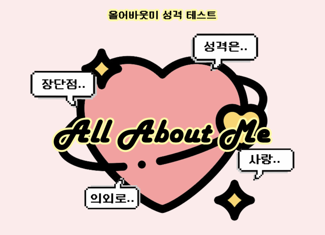 다양한 테스트가 많이 있는 테스트잇이란 사이트에서 이번에 All About Me 성격 테스트 즉 올 어바웃 미 성격 테스트가 나왔다던데 한번 소개드리겠습니다.