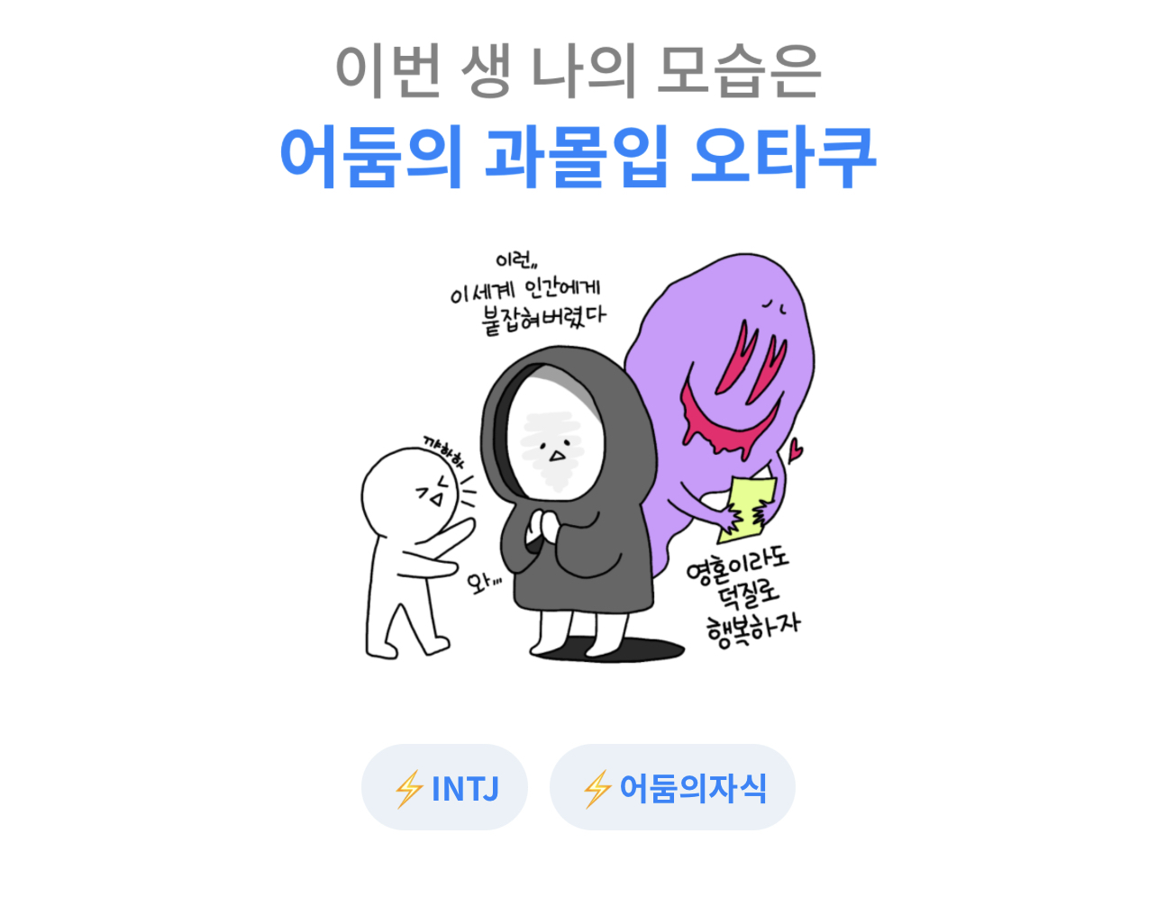 이번 생 나의 모습은 어둠의 과몰입 오타쿠가 나왔습니다