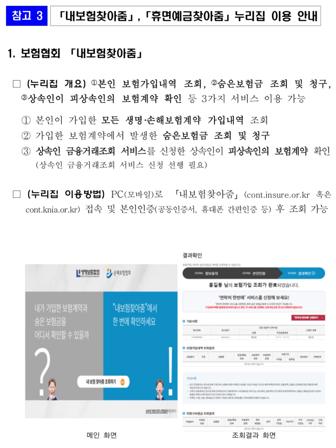 또한, 일부 보험회사만 운영하던 숨은보험금 조회·안내시스템을 보험업계 전반으로 연내 확대한다고 합니다.