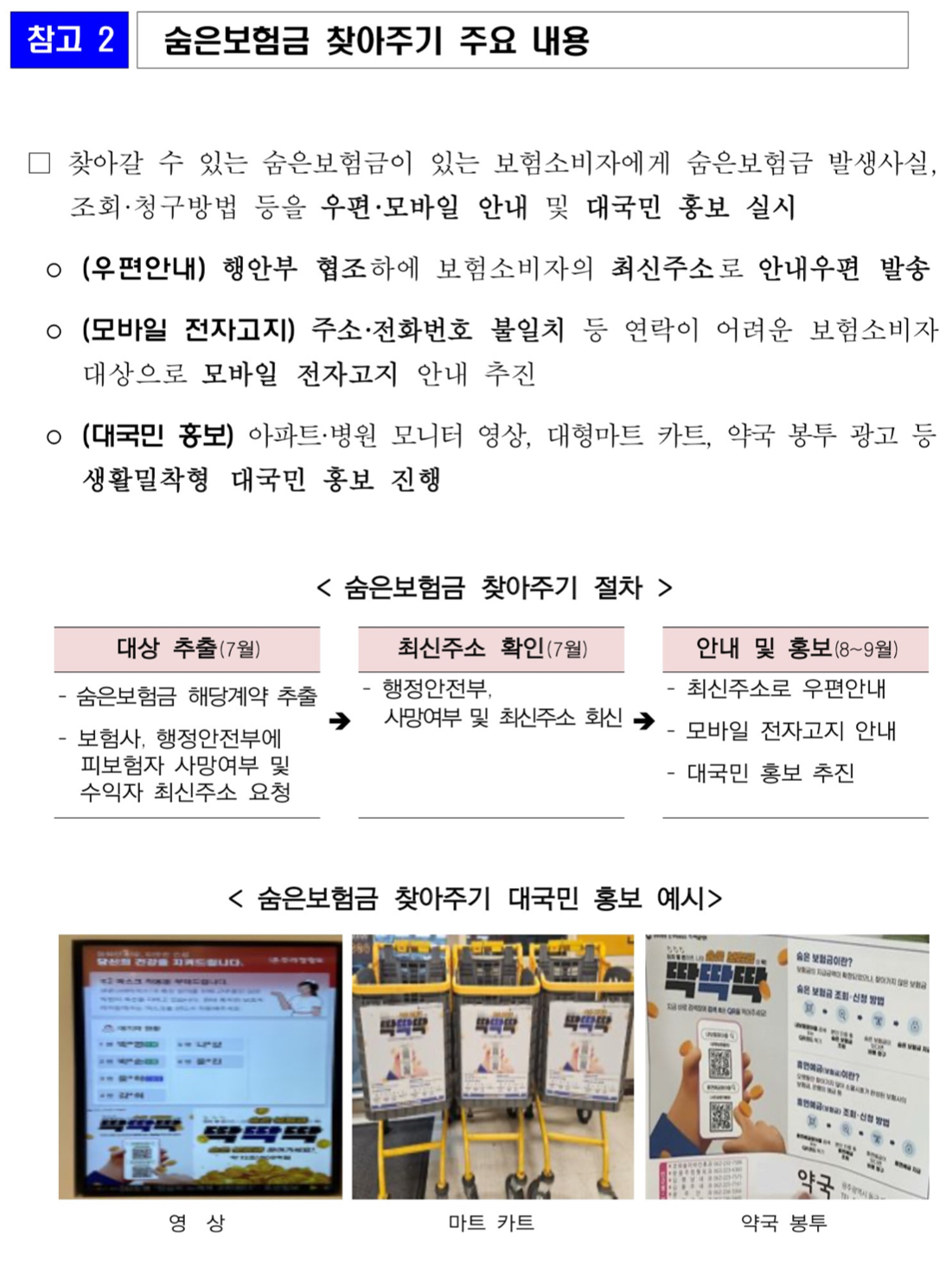 보험업계는 금융위원회와 행정안전부 협조를 통하여 보험계약자등의 최신 주소를 확인한 후 2025년 8월 중 개별 우편 안내를 집중 시행할 예정