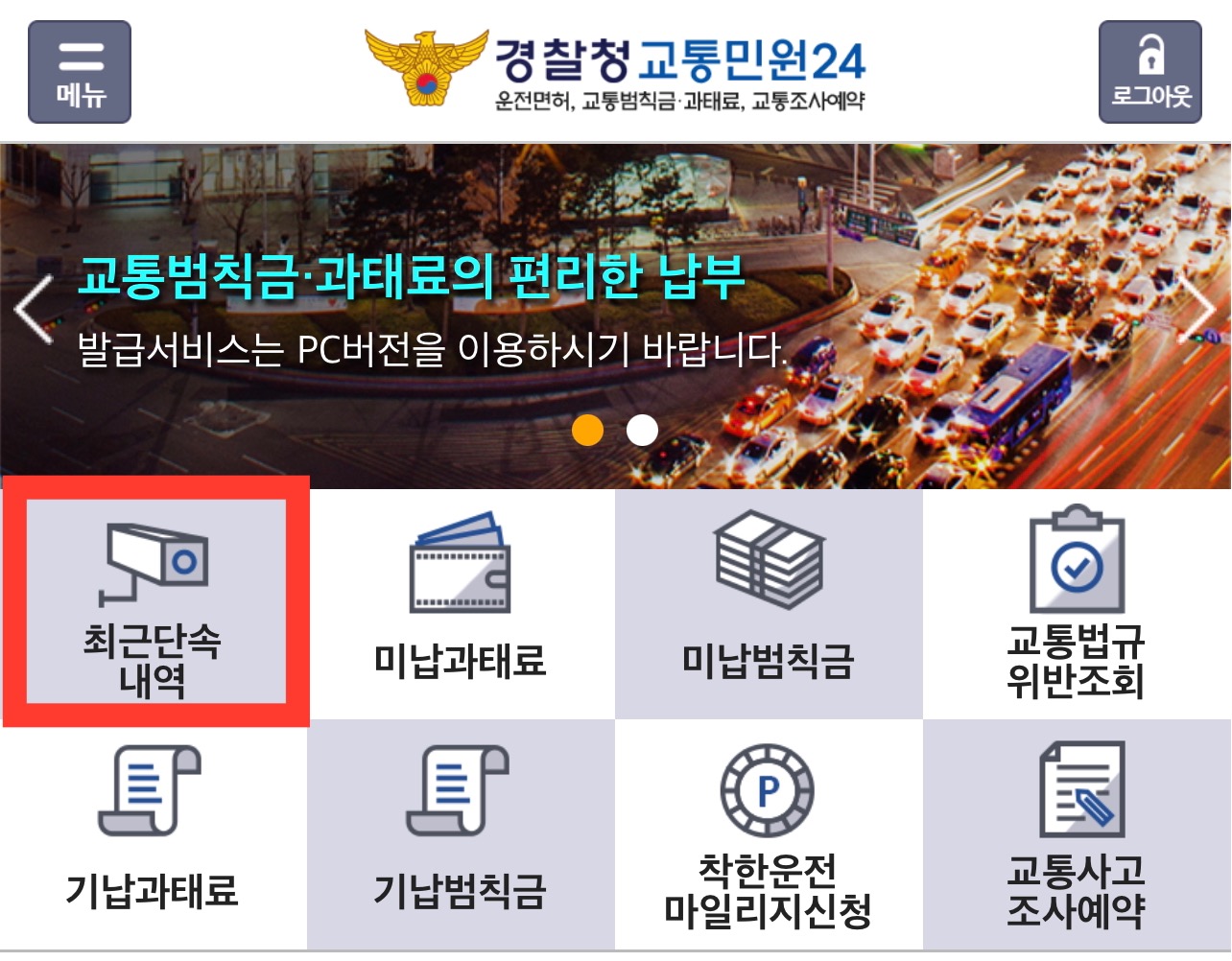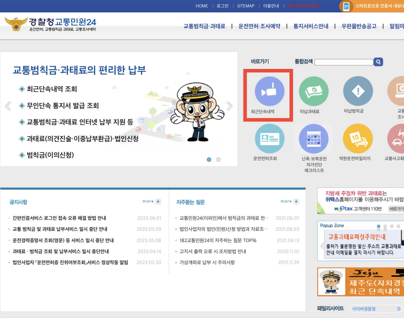 그리고 메인화면에 최근단속내역이 나오는데 이를 통해서 확인이 가능합니다.