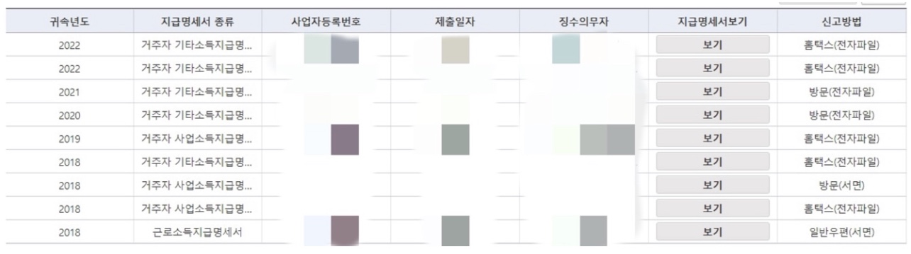 5. 원하는 근로소득 원천징수영수증을 찾았다면 발급하기