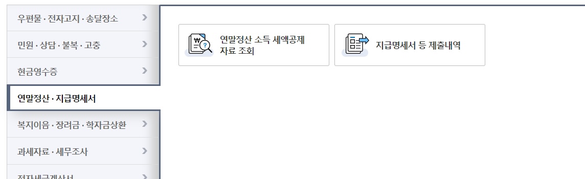 3. 연말정산•지급명세서 탭 클릭 후 “지급명세서 등 제출내역”클릭