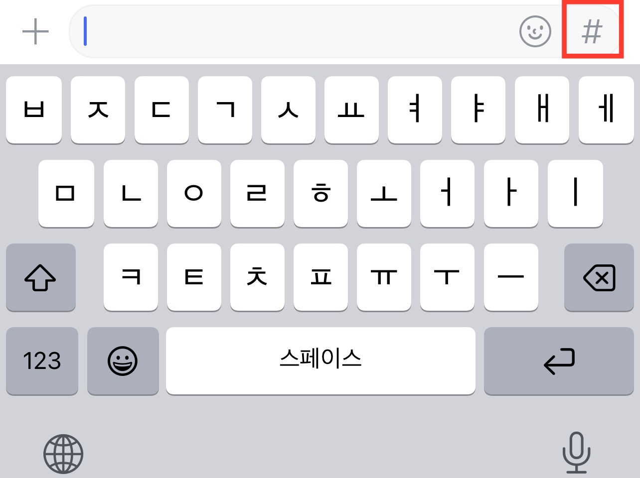 1. 단톡방이나 개인채팅방 카톡을 접속한 후 메세지 입력창에 #버튼을 눌러주시길 바랍니다.