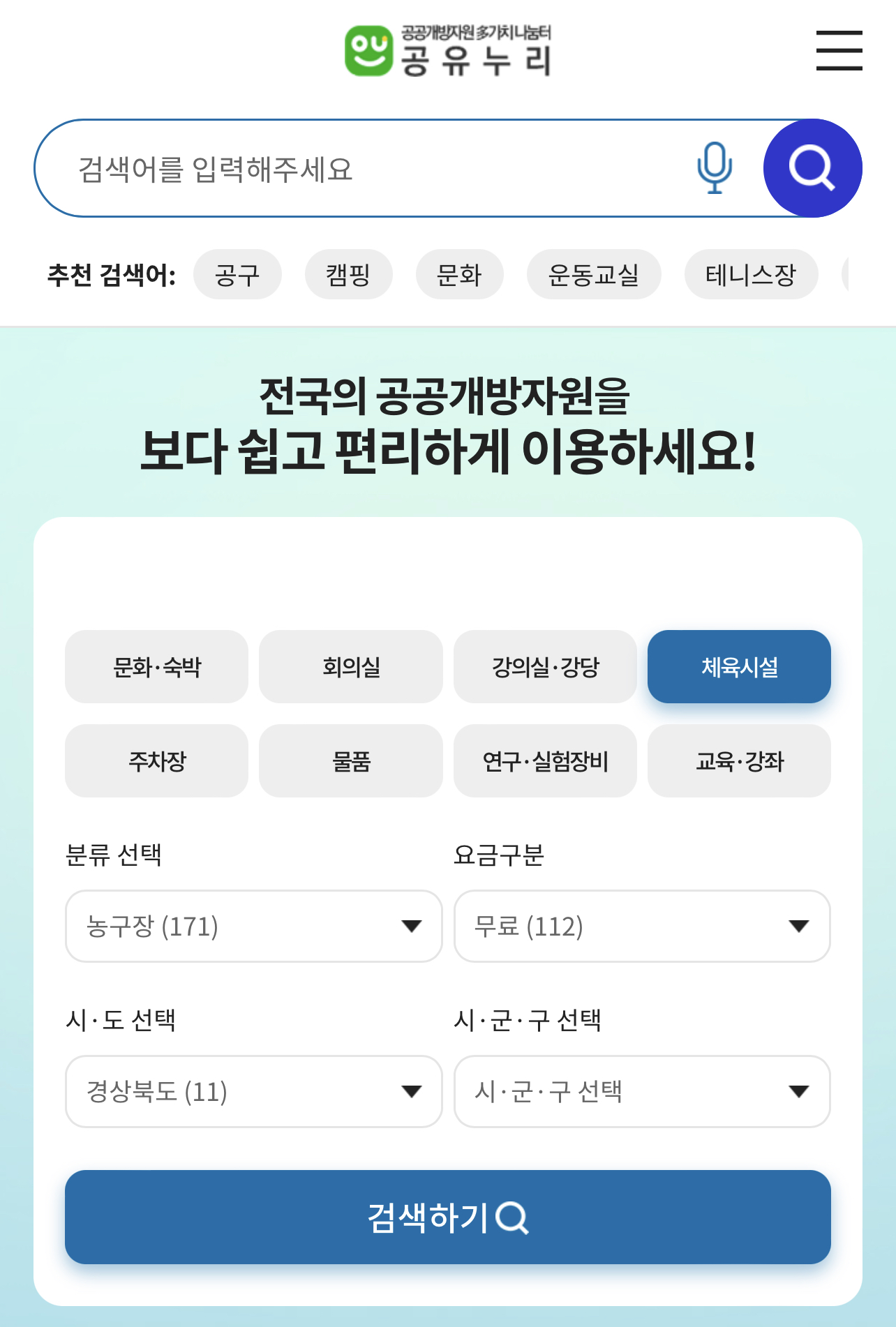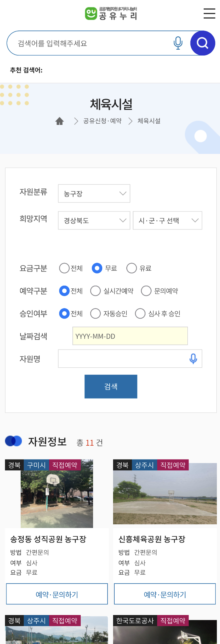참고로 사진에 보시다시피 농구장 사진과 지역 위치 및 예약 정화번호까지 있으니 공유누리를 통해서 한번에 모든걸 할 수 있다는게 큰 장점 입니다.