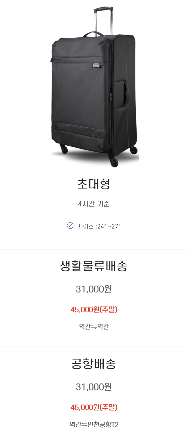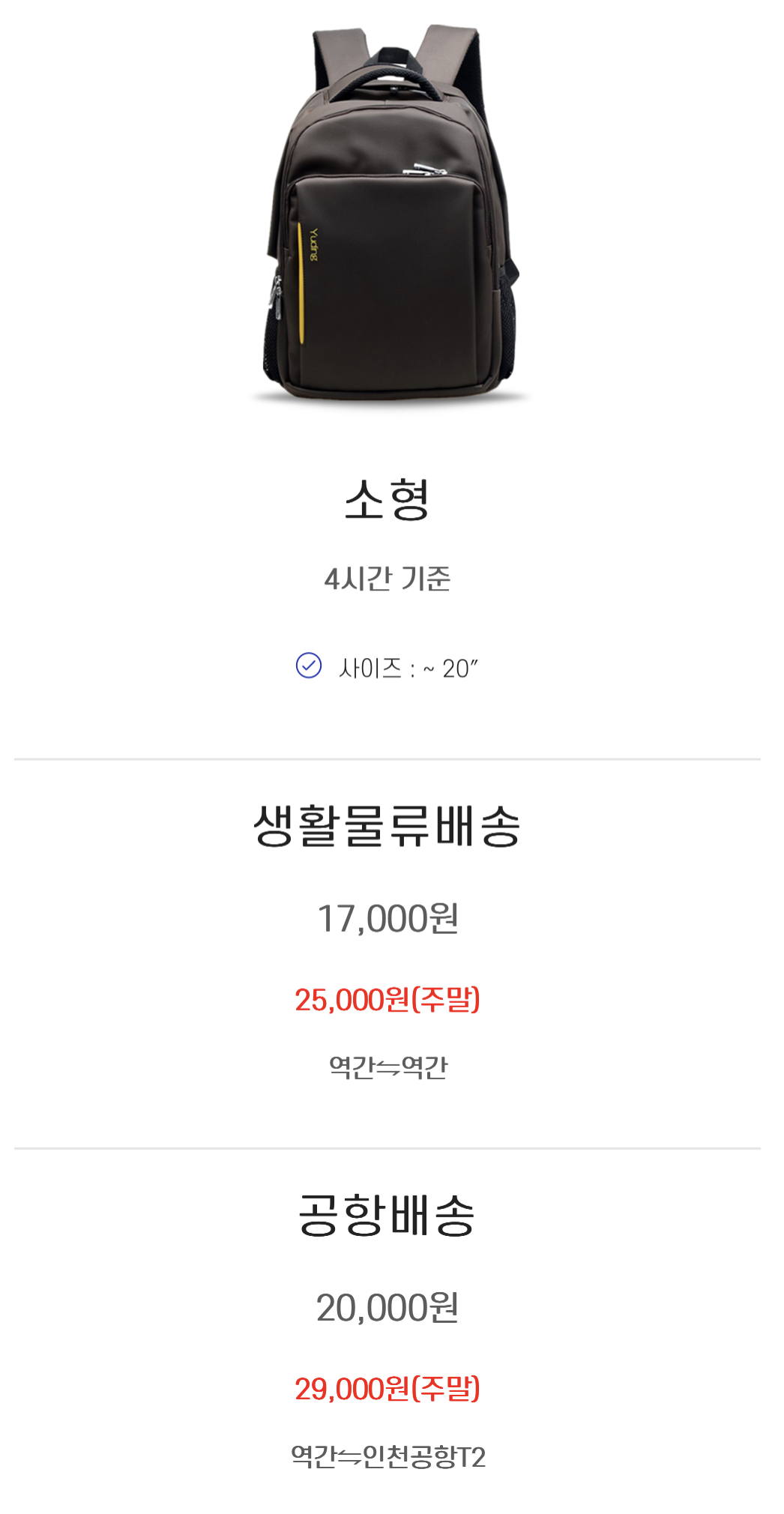 티러기지 홈페이지에서 온라인 배송 예약 > 배송 맡기기 > 터미널에서 짐 찾기