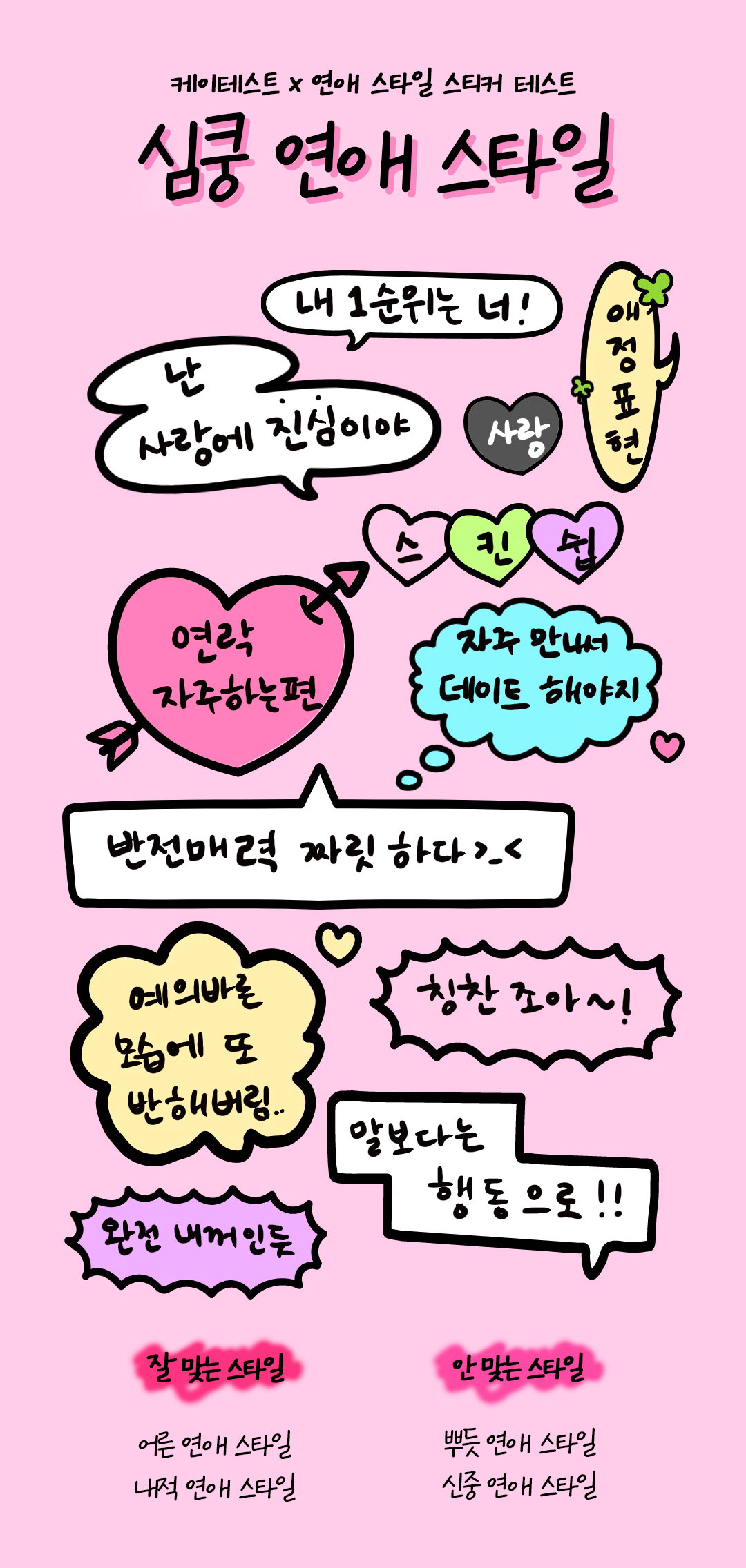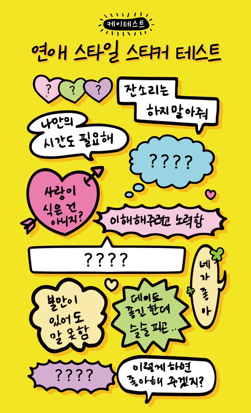 스티커로 알아보는 나의 연애 스타일 테스트가 케이테스트에서 새롭게 나와서 설명과 더불어 mbti 유형 결과도 전체 안내드리려고 합니다.