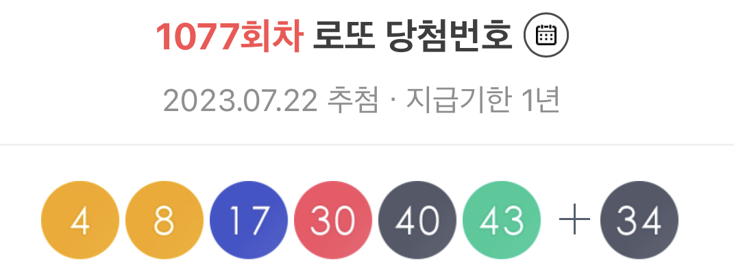 2023년 7월 22일 제1077회 로또 당첨번호 조회 결과가 발표되었으며 이번 로또 1등 당첨지역까지 같이 공개되었습니다.