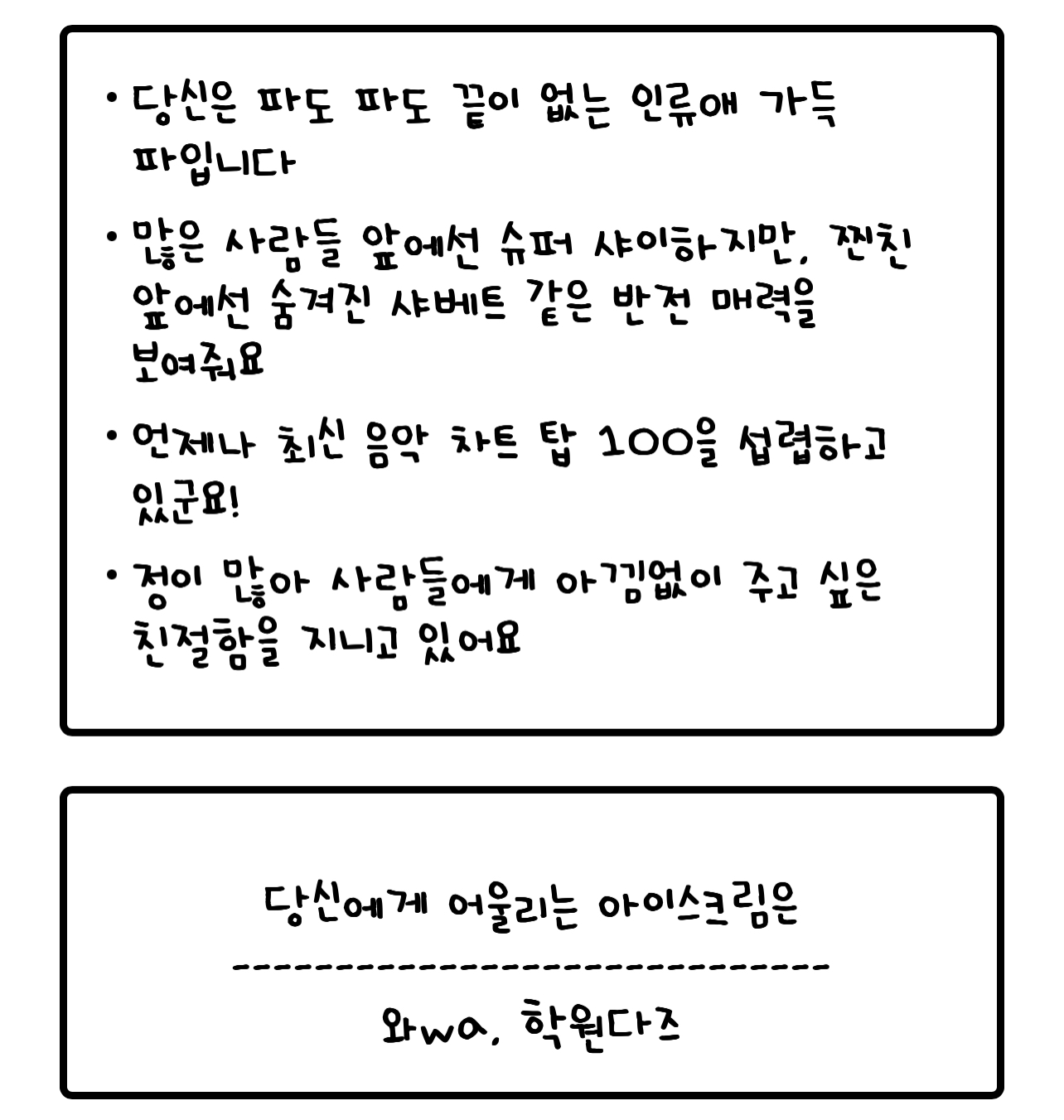 나에게 딱 맞는 아이스크림을 골라서 친구한테 사달라고 조를수 있는 재밌는 테스트가 있어서 소개드리려 합니다.
